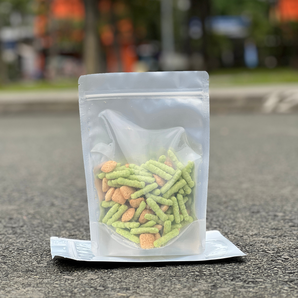 Túi zip 1 mặt bạc 1 mặt trong là loại bao bì tiện lợi với một mặt bạc chống ẩm, chống ánh sáng và một mặt trong suốt giúp quan sát rõ sản phẩm. Hiện nay, túi zip một mặt bạc một mặt trong được ứng dụng rộng rãi trong ngành hàng thực phẩm như đóng gói hạt khô, bánh kẹo, gia vị và các sản phẩm sấy khô.