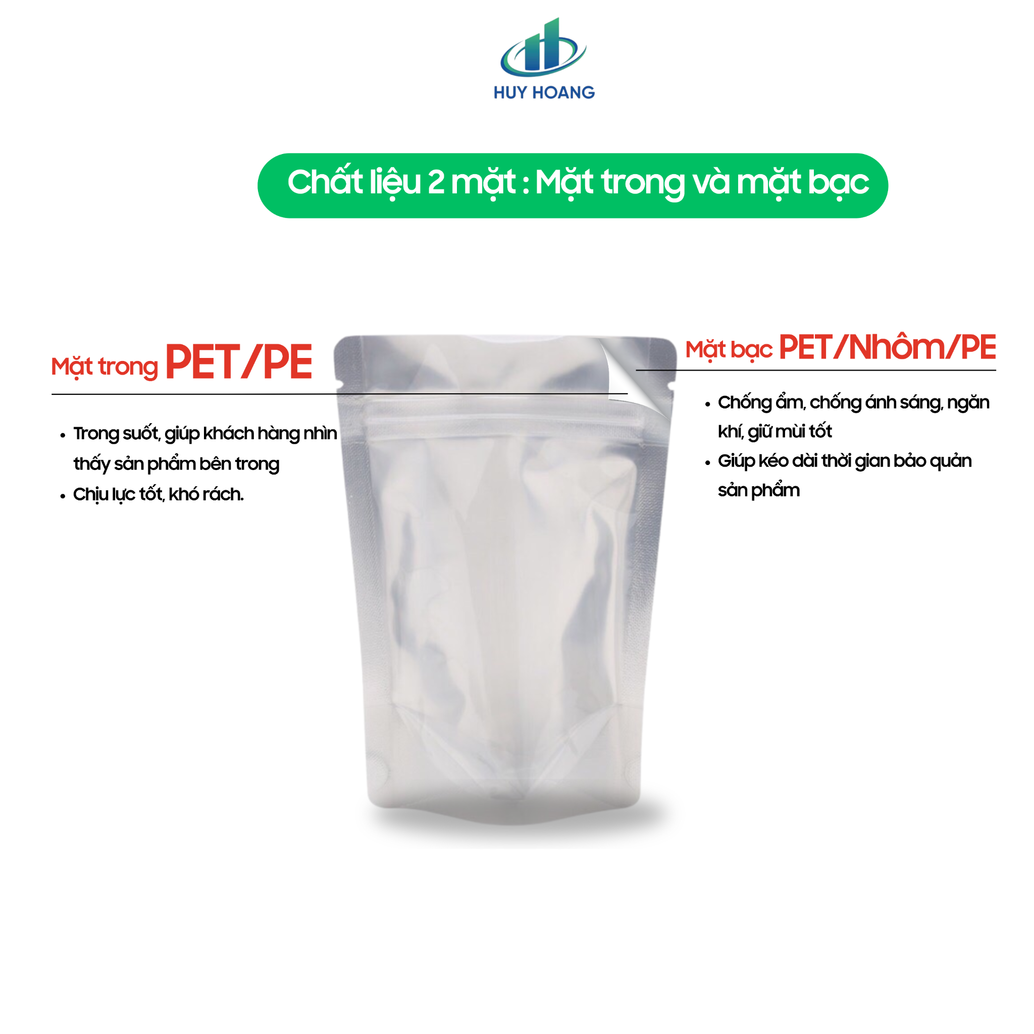1. Thông tin về túi zip một mặt bạc một mặt trong của Huy Hoàng MTX
